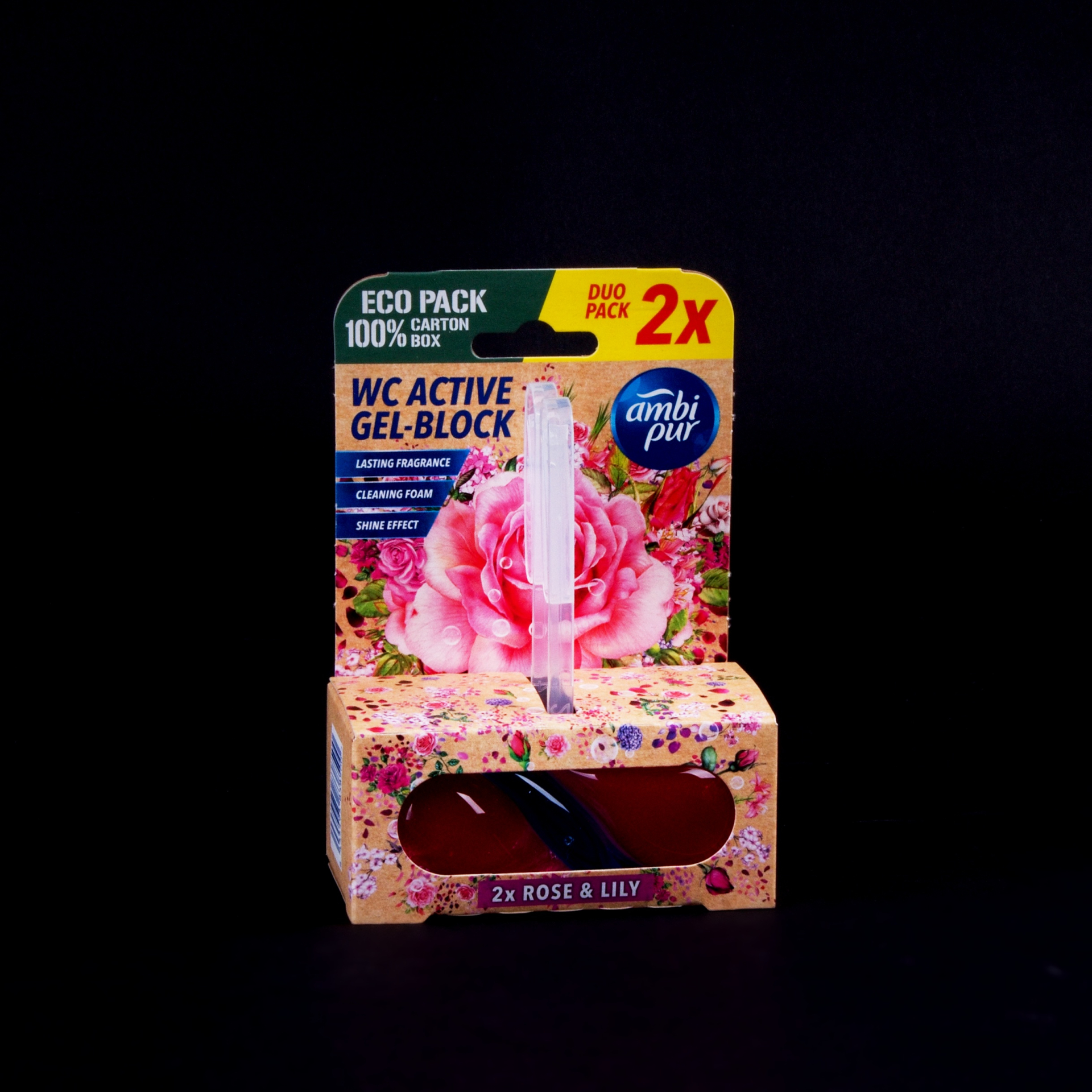 Dodejte své toaletě dlouhotrvající svěžest a čistotu s Ambi Pur WC Active Gel-Blokem v růžovo-liliové vůni. Tento praktický závěsný osvěžovač nejen neutralizuje nepříjemné pachy, ale zároveň uvolňuje příjemnou vůni čerstvých růží a jemných lilií při každém spláchnutí. Země původu: Německo