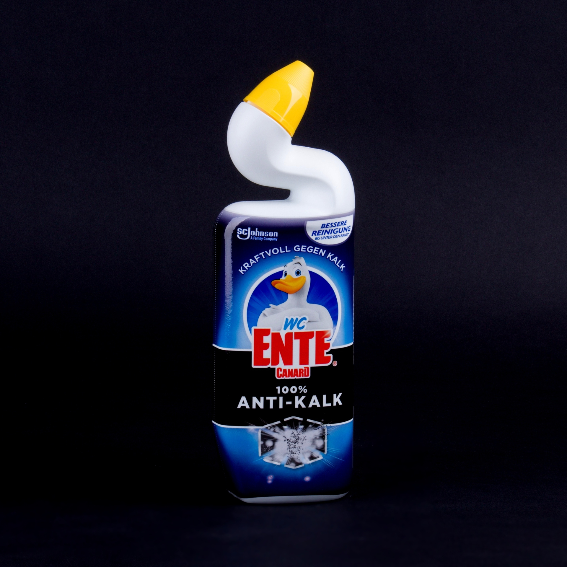 WC Ente Canard Anti Kalk Odstraňovač vodního kamene odstraní pravidelným používáním vodní kámen z WC mísy spolehlivě navždy. Je pětkrát lepší v účinnost proti vodnímu kameni ve srovnání s podobnými produkty. Mocné složení, které odstraní 100% vodního kamene z vaší toalety. Unikátně tvarovaný krk dosáhne pod okraj mísy kde se vodní kámen ukládá nejvíce a zabíjí bakterie které se zde množí. Zabíjí 99.9% bakterií nad i pod vodní hladinou. Čistí a osvěžuje. Dosáhne lépe pod okraj mísy - lépe čistí. S výraznou parfemací. Tekutý dezinfekční WC čistič Likviduje 99,9% bakterií nad i pod vodní hladinou Velice silné účinky Efektivně odstraňuje vodní kámen Díky zakřivené láhvi působí i v těžko dostupných místech